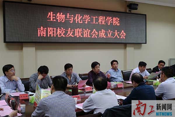 本网讯(特约记者/田永磊 通讯员/张如栩 胡定芳)4月15日下午,生物与化学工程学院南阳校友联谊会成立大会在中込会馆第一会议室举行。副校长肖泽昌出席大会。相关单位负责同志、生化学院班子成员、教师代表、南阳优秀校友代表40余人参加大会。生化学院党委书记薛刚主持大会。