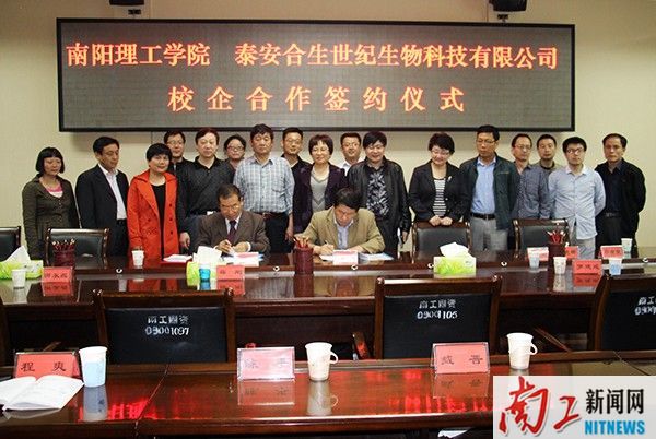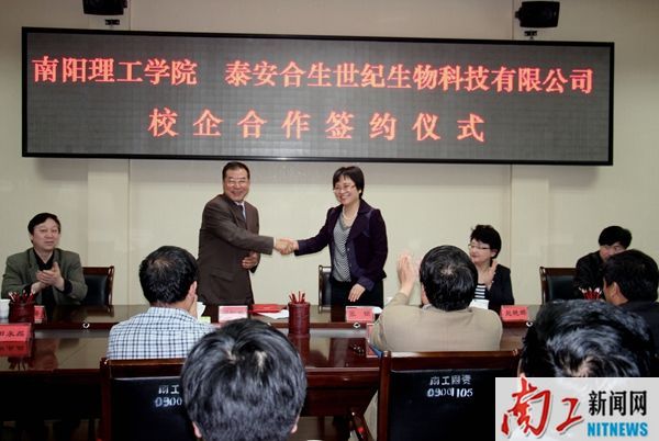 本网讯(特约记者/田永磊 张如栩)4月26日,我校与山东泰安合生世纪生物科技有限公司校企合作签约仪式在会馆第一会议室举行。副校长张铟、泰安合生世纪生物科技有限公司董事长周刚毅出席仪式。校相关部门负责同志及教师代表参加仪式。