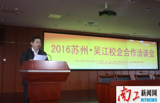 4月22日上午,“2016苏州吴江校企合作洽谈会”在吴江人社局举行。来自全国各地的110所大中专院校与吴江当地96家优质企事业单位共聚一堂,共商校企合作大计。此次洽谈会促进了更多校企合作项目在吴江落地生根,为吴江经济社会的持续快速发展提供源源不断的人才资源,为高校毕业生提供更多的就业机会,为校企合作搭建更好的平台。会议共安排两家高校发言。陈世云代表我校进行了主题发言,详细介绍了我校的办学以及在毕业生就业方面的情况,并欢迎与会的企事业单位和同行与我校进行深度的交流与合作。