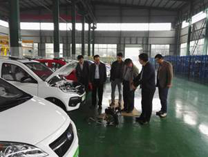 在通宇,学院领导深入企业的生产现场了解新能源汽车的生产研发现状,并试乘了企业研发的电动汽车。随后双方领导和技术专家就学生实习实践基地建设和校企深入技术合作研发等问题进行了座谈,确定了学生生产实习安排,交流了双方在电机驱动领域的研究情况。