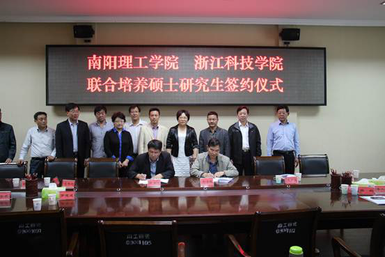 本网讯(特约记者/田永磊 通讯员/张如栩 胡定芳)5月15日下午南阳理工学院与浙江科技学院联合培养研究生签约仪式在中込会馆第一会议室举行,副校长张铟,浙江科技学院生物与化学工程学院相关领导出席会议。我校相关部门负责同志及教师代表参加签约仪式,生化学院副院长朱元良主持会议。