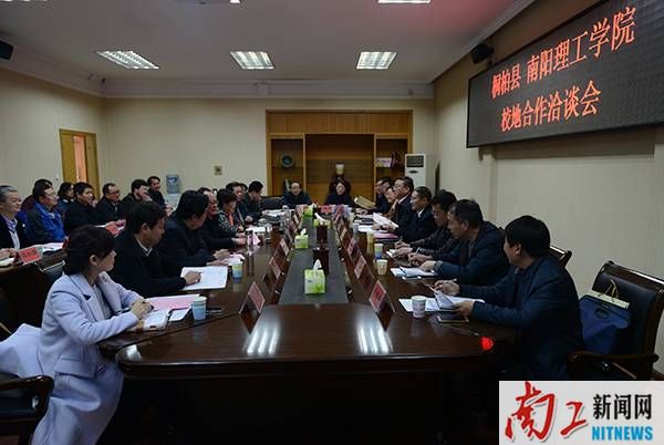 本网讯(记者/王虎 学生记者/王秋柯) “近几年,桐柏和南阳理工学院互动很好,现在校地合作是呼之欲出、水到渠成,我们认为能与贵校合作是很骄傲的,对今后桐柏经济社会多方面的发展也充满了期待。”3月2日下午,桐柏县委书记莫中厚带领县委常委、常务副县长周大鹏,县委常委、组织部长韩霞等一行10人专程来到我校洽谈校地合作。