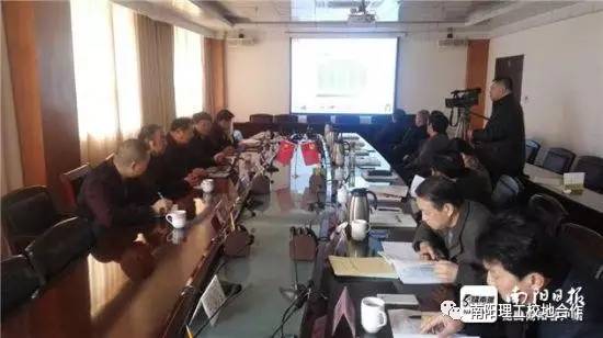 3月24日上午,南阳理工学院副校长陈世云、校地合作处处长赵彦普、生化学院院长朱元良、经管院教授高祖灵等一行6人深入西峡县,就校地合作召开了座谈会,县委常委、常务副县长马俊和组织部、宣传部、发改委、园区办、人社局、工信局、科技局等相关部门负责人参加了会议。