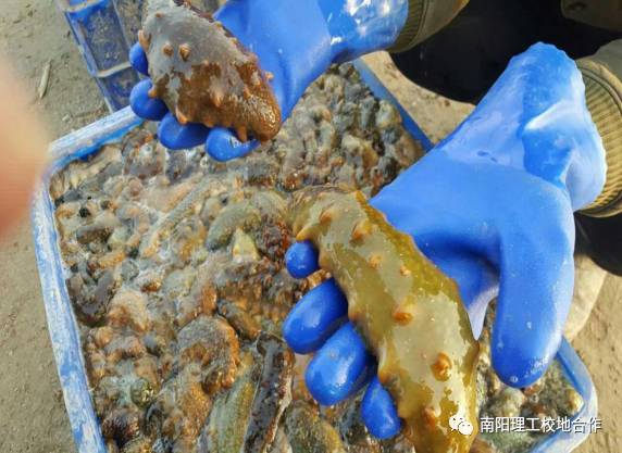 中间手拿海参育苗的为海宏集团的董事长宁超峰
