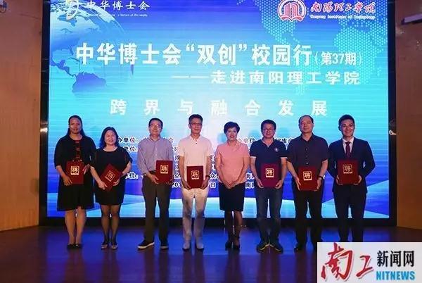 5月27日,中华博士会“双创”校园行走进南阳理工学院大型公益活动在我校领创空间二楼报告厅举行。著名独立经济学家、中华博士会执行会长杜猛,美国麻省大学微生物学博士、美国马里兰大学博士后姚福德,河南省特聘教授、日本北海道大学教授、教育部新世纪优秀人才高书燕,中国政法大学商学院教授、MBA中心执行副主任、深圳证券交易所综合研究所博士后导师胡继晔,华中科技大学生物学博士、华肽集团董事局主席、中央电视台“中国创业榜样”曾建华,北京理工大学博士、北京泰盛资产管理有限公司董事长路运峰,校长刘荣英、校党委副书记郭建生、副校长陈世云出席活动。