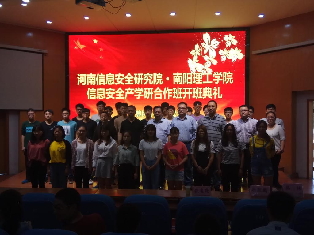 河南信息安全研究院致力于国产自主可控、信息安全、安全自动控制芯片、物联网应用等技术攻关与产品研发,在国产自主可控、信息安全、高性能计算、物联网可信计算、大数据研究等领域的整体研发水平处于国内领先地位。南阳理工学院自建校以来,始终致力于应用型人才培养,走产学研用一体化和开放办学之路,历年来,南阳理工学院特别是信息技术类专业学生秉承“不甘示弱”的南工精神,敢于与全国重点大学学生同台竞技、屡获大奖。2017年5月,南阳理工学院计算机学院与河南省信息安全研究院举行了战略合作签约仪式,校企双方本着互惠互利、共同发展、平等友好、协商一致的原则,就合作成立信息安全“实战”研修班、对学生进行联合安全信息专业人才培养、共建师资培训基地和学生实习实践基地,达成了战略合作协议。此次“信研班”正式开课,也标志着校企双方的合作又向前迈进了一大步。