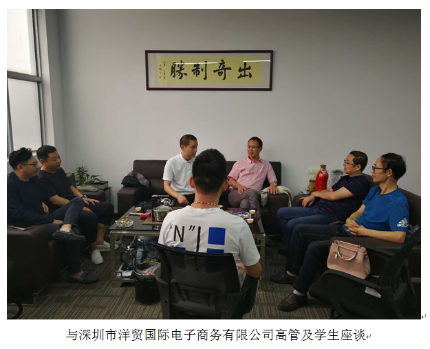 2017年11月11日至12日,电子商务学院逯忆书记,国际经济与贸易专业副教授金鑫、吕晓军走访深圳轩飞扬网络科技有限公司、深圳市洋贸国际电子商务有限公司等跨境电商校企合作企业,实地看望在企业实训的电商学院师生,并看望部分深圳校友。