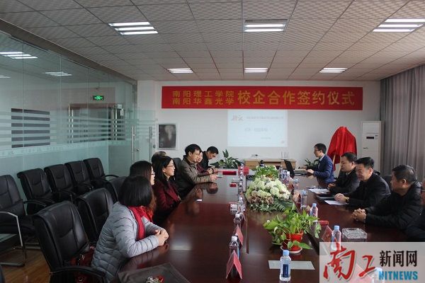 为进一步深化教育教学改革,全面推进产学研深度融合,更好地为南阳光电产业发展服务,11月28日上午,电子与电气工程学院与南阳华鑫光学仪器有限公司举行校企合作签约协议。南阳高新区党工委委员、管委会副主任宋海瑜,南阳高新区创业中心主任张常聚、副主任裴新超,南阳华鑫光学仪器有限公司总经理王振豫,电子与电气工程学院院长朱清慧、院党委副书记张定群,副院长翟天嵩、乔建良和相关教师参加签约仪式。