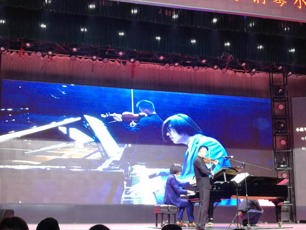 12月2日晚青年旅德钢琴家金麦克先生与中国青年乐团首席小提琴家马魏家为我校音乐学院师生和南阳的音乐爱好者带来了一场精彩的钢琴小提琴音乐会。音乐会在莫扎特《D大调第四小提琴协奏曲第一乐章》的优美音乐中拉开序幕,钢琴家金麦克的双手在钢琴上跳跃飞舞,小提琴家马魏家的手指在琴弦上精彩舞蹈,美妙的音符从指尖流淌,令人沉醉的天籁之音在音乐厅上空盘旋,现场观众无一不被深深陶醉。音乐厅座无虚席,掌声不断。钢琴家金麦克演奏的肖邦《英雄大波兰舞曲》将音乐会推向了高潮。音乐会共演奏不同时期不同风首作品7首,最后音乐会在钢琴家金麦克和小提琴家马魏家合奏的维尼亚夫斯基《“浮士德”主题幻想曲》中落下帷幕。