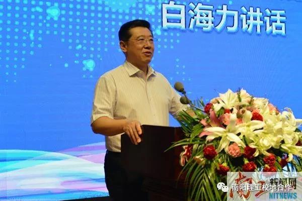 15日上午,天津市教育委员会副主任白海力、原环境保护部污染防治司正司级巡视员李新民、中国循环经济协会循环经济科技成果转化促进中心理事长黄泓人、天津市高校科技创新成果转化中心主任曲杨、中国循环经济协会循环经济科技成果转化促进中心主任房建国、天津中医药大学副校长郭利平,南开大学、天津大学、河北工业大学、天津理工大学、天津城建大学、天津工业大学、天津中医药大学、天津科技大学等高校科技工作部门相关负责同志,南阳市政府副市长张明体、河南省教育厅科技处处长杨学勇、南阳师范学院校长卢志文、南阳市科技局局长张梅以及南阳市教育局、桐柏、淅川、南召、新野等县的主管领导和各县市区科学技术局主管科技成果转化的负责同志,南阳各高校的负责人、全体在家校领导参加合作启动仪式。校党委书记邢勇主持仪式。