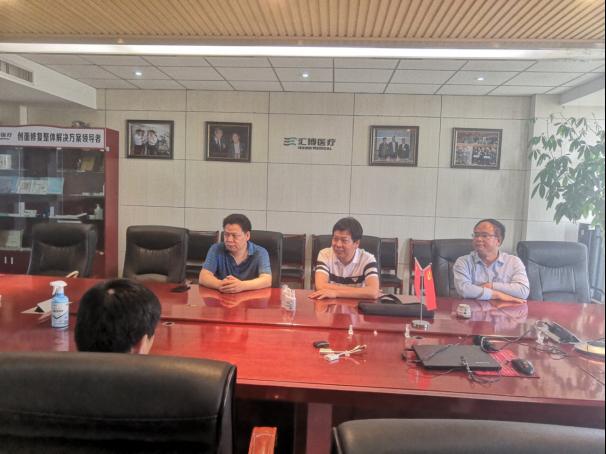 6月1日下午,校地合作管理与服务中心主任赵彦普、大学科技园总经理杨怀坦,传媒学院钱智民一行赴河南汇博医疗股份有限公司洽谈校地合作产教融合事宜。