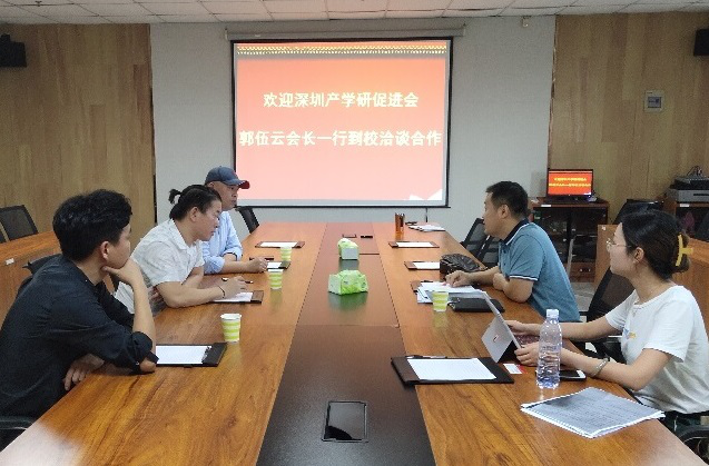 2020年9月2日下午,深圳产学研合作促进会郭伍云副会长、秘书长彭欢炯一行3人来校洽谈产学研合作事宜。校地合作管理与服务中心符浩彬科长、杨思佳副科长出席洽谈会。