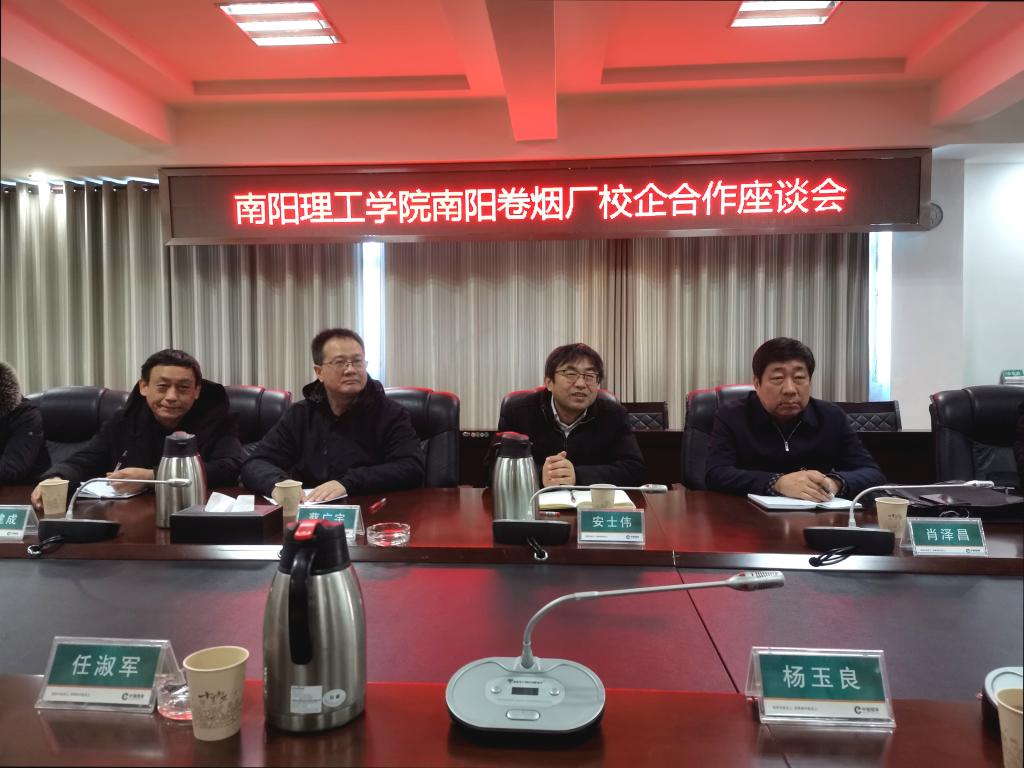 12月30日上午,校长安士伟,副校长肖泽昌带领校地合作处处长赵彦普,智能制造学院院长蔡广宇,生物与化学工程学院书记康磊、院长罗建成等一行九人赴南阳卷烟厂进行校企合作考察交流。