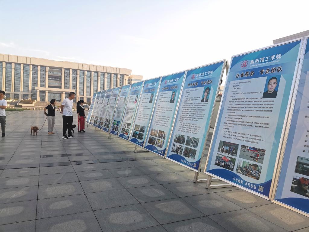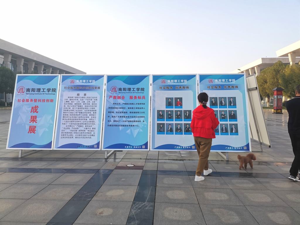 这次展览分“产教融合服务标兵”、“专业团队开拓进取”、“共建平台真诚合作”、“科技创新成果累累”等四部分共100多张展板,其中有南阳理工学院社会服务优秀教师、社会服务专业团队、社会服务创新平台及精选出来的科技成果、横向合作项目等内容。