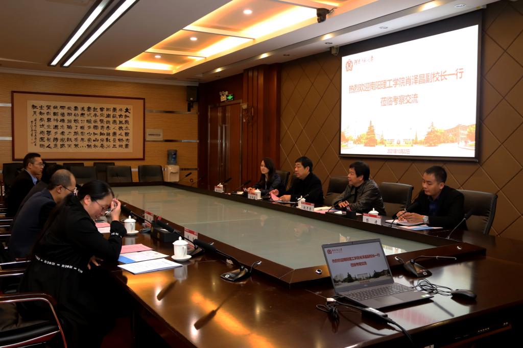 10月22日,副校长肖泽昌带领校地合作管理与服务中心负责人及相关人员到河南师范大学考察交流。河南师范大学校党委常委、副校长郭海明出席会议,校长办公室、科技处等相关单位负责人参加座谈。