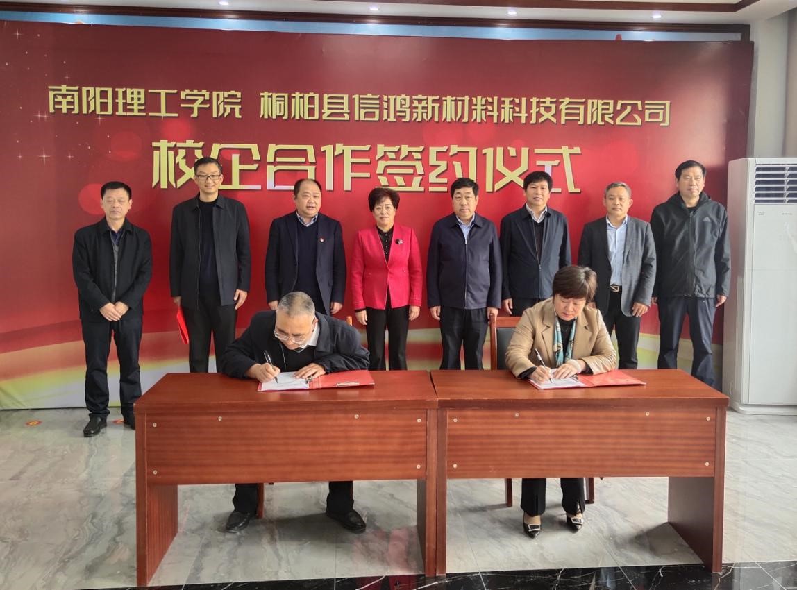 双方签署校企战略合作协议、高性能钙粉改性及应用研究项目协议,并为南阳理工学院“战略合作基地”“新材料研究中心”揭牌。