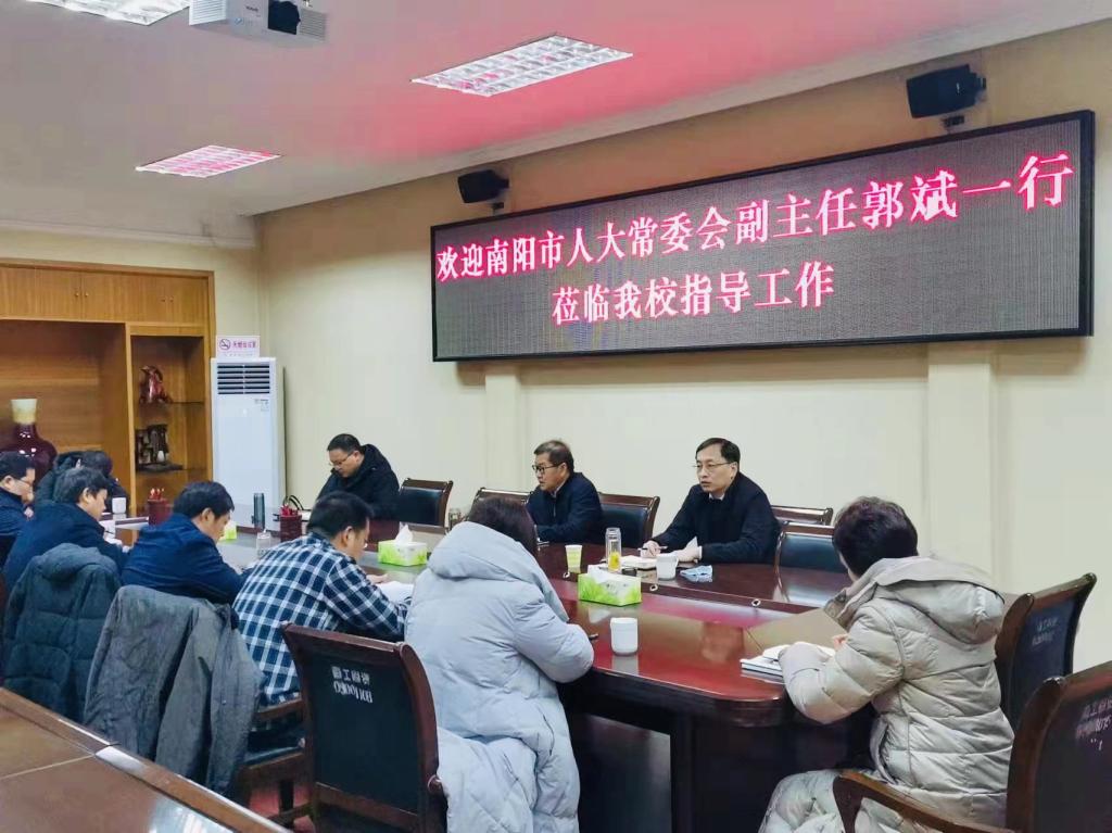 本网讯(记者/杨怀坦)1月26日下午,南阳市人大常委会副主任郭斌,南阳市税务局总经济师魏伟一行来校调研校地合作工作。副校长肖泽昌主持会议,校地合作管理与服务中心、财务处、计算机与软件学院主要负责人及相关教师陪同调研。