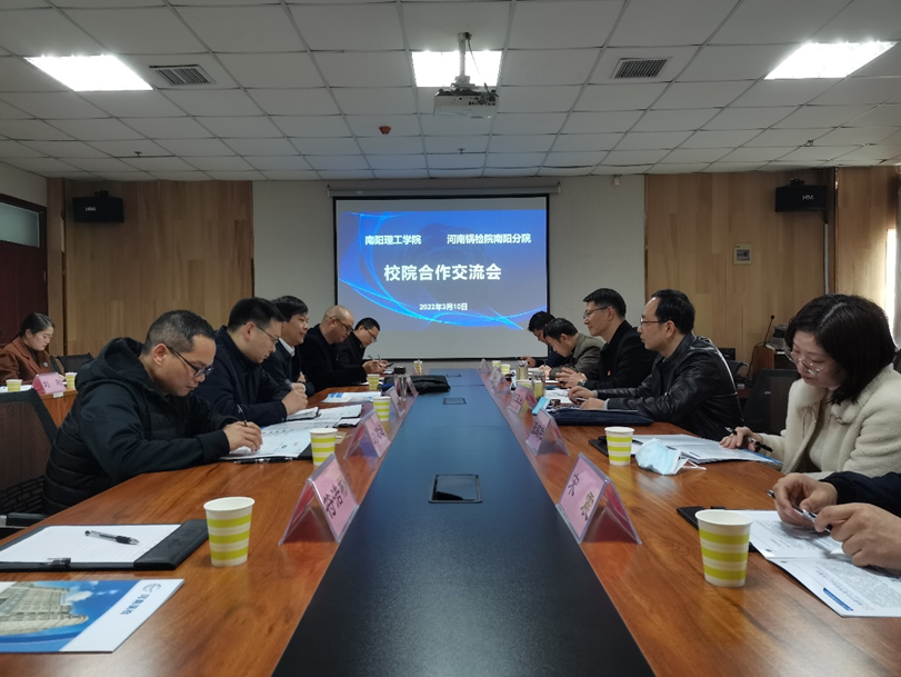 3月10日,河南省锅炉压力容器安全检测研究院南阳分院院长周纪龙一行8人,来校就校院合作进行考察交流,校地合作管理与服务中心主任赵彦普主持交流会,生物与化学工程学院、智能制造学院专家及校地合作管理与服务中心相关同志出席座谈会并陪同参观考察。