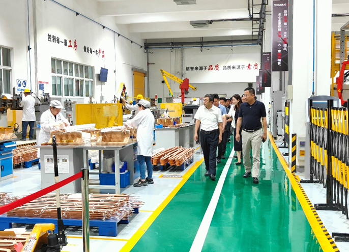在万创奇等人陪同下,安士伟一行参观了卧龙电气南阳防爆集团展厅、中型事业部和BCD新地块。