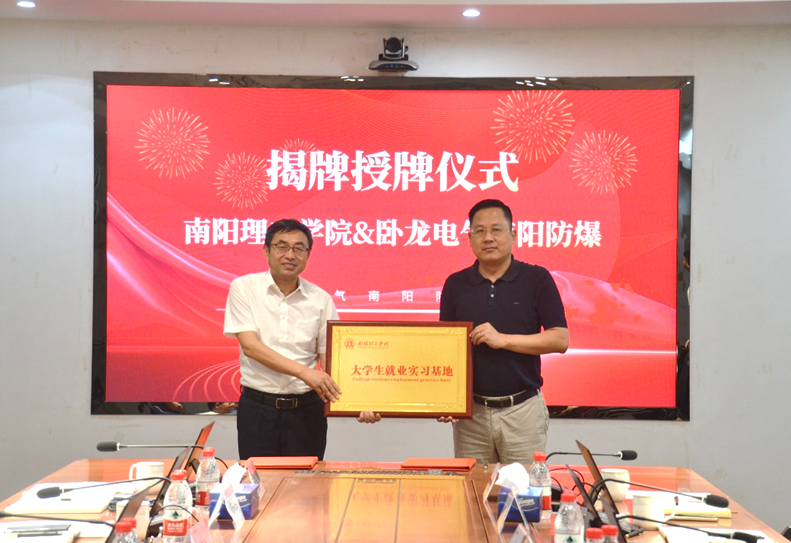 本次活动双方签订了校企战略合作协议,学校为卧龙电气南阳防爆集团颁发了“南阳理工学院大学生就业实习基地”铭牌。