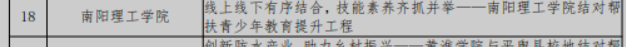 近年来,南阳理工学院深入贯彻习近平总书记的“精准扶贫”思想,坚持实施精准扶贫战略,充分发挥学校的资源、人才、科研和技术等优势,实施了“1+5+N校地帮扶”模式,人民网、大象网等多家媒体对我校校地结对帮扶工作进行宣传报道,我校连年获评“河南省承担校地结对帮扶高等院校综合评价好的院校”,得到了南召县当地群众和党委政府的高度肯定,较好的树立了南阳理工学院精准扶贫工作的品牌。