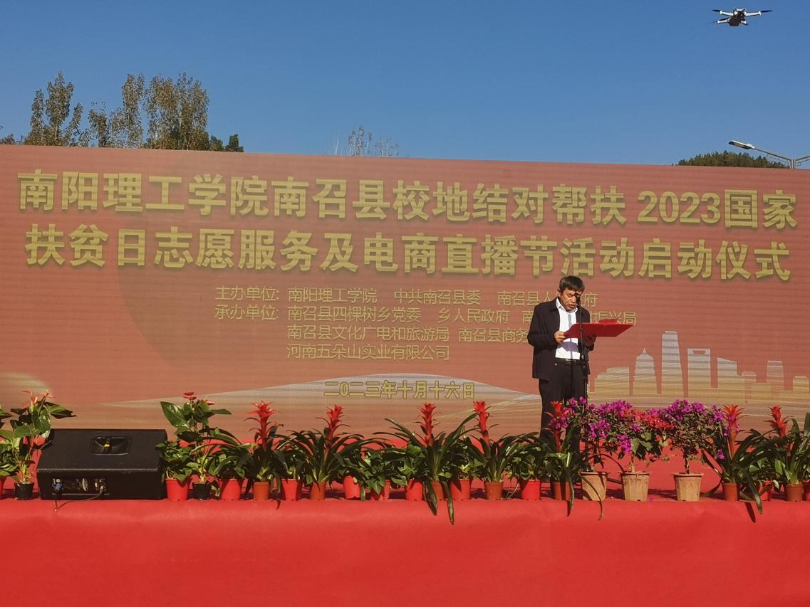 本网讯(特约记者/杨怀坦 符浩彬)10月16日,南阳理工学院南召县校地结对帮扶2023国家扶贫日志愿服务及电商直播节活动启动仪式在南召县五朵山举行,校党委书记安士伟,党委副书记、工会主席董豪,副校长张爱红,校地合作管理与服务中心、校团委、教师教育学院等单位相关负责人及“六个一”实践活动的师生参加活动。