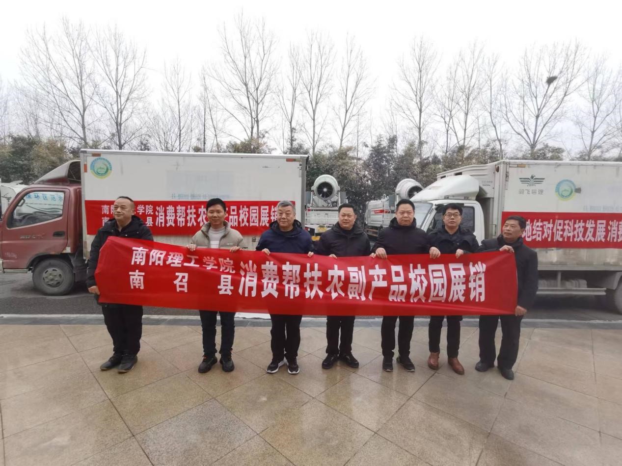 本网讯(特约记者/陈连山)1月18日,南阳理工学院结对帮扶南召县农副产品进校园活动在南阳理工学院东南校区体育馆外广场举行。南阳理工学院工会副主席姜保雨、校地合作处副处长杨怀坦、南召县乡村振兴局局长王兴响现场指导工作。