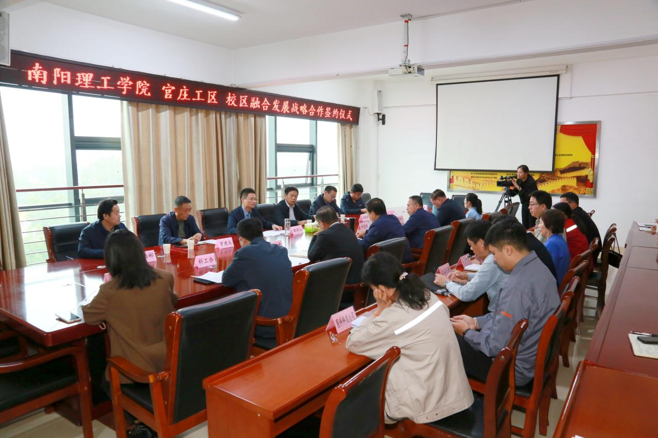 本网讯(特约记者/符浩彬)9月18日,南阳理工学院与官庄工区共同在官庄工区举行校区融合发展战略合作协议签约仪式。此次签约,标志着双方将在产学研深度融合、科技成果转化、战略咨询服务、人才培养引进等关键领域开展深度协作,推动校地协同创新迈入更深层次、全方位的合作新阶段。校长郝好山,官庄工区党工委书记高增伟等出席仪式。