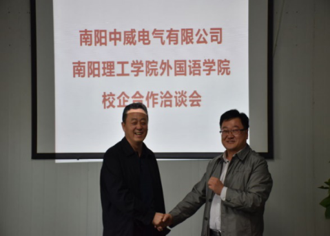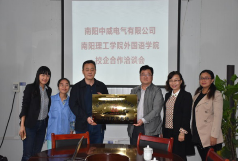 10月19日上午,外国语学院党总支书记闫合占、副院长赵万哲等一行四人来到位于南阳市工业园区的南阳中威电气有限公司,与中威董事长韦国松进行了关于跨境电商平台建设及服务的合作洽谈。在洽谈中,双方互相通报了近期为了合作所做的工作及进展情况:作为生产型的外贸企业,南阳中威电气有限公司正在进行产品的国际试验和认证,预计将于今年年底完成,完成之后将使其产品的型号和等级完全与国际标准吻合,为打开国际市场扫清了技术上的障碍;外国语学院作为产品推广及语言服务方,在派遣教师到企业学习跨境电子商务平台操作技能并实践锻炼的基础上,已经在着手筹建“南阳中威跨境电商人才培养小组”,计划由教师带领学生深入到工厂生产一线,进行顶岗实习,为企业的跨境电商平台建设提供语言沟通和运作人员的保障。 除此之外,双方又进一步探讨了英语专业实践教学的转型要求,以及与企业相关工作岗位的接轨与融合,最后确立南阳中威电气有限公司为我院的实践教学基地,为随后我院的英语实践教学打开了一个新的通道,争取为学生提供一个良好的实习实训环境。