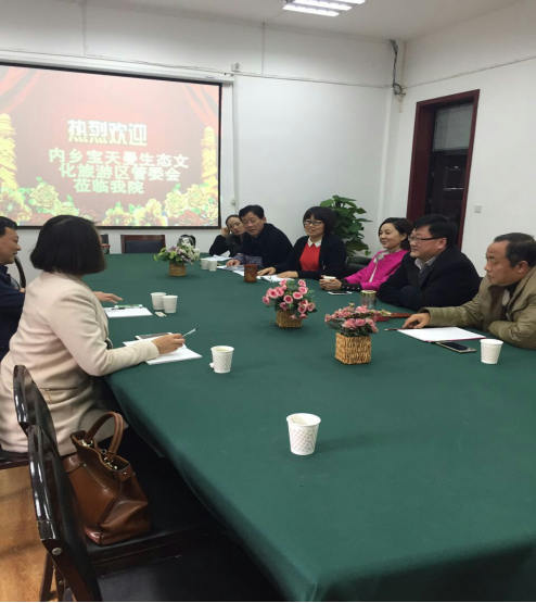 11月3日上午,外国语学院院长王黎生、党总支书记闫合占、副院长海霞带领学院社会服务团队负责人,在院会议室与内乡宝天曼生态文化旅游管委会主任王晓杰一行就关于景区外语语言文化环境建设、共建大学生社会实践教学实习就业基地等问题进行了合作洽谈。在洽谈中,双方首先表达了合作的强烈意愿,然后就培养英、日、韩三种语言的景区讲解员、共建大学生社会教学实习就业基地、景区材料的翻译、文化交流培训、共同进行景区的语言文化建设研究、共同培养服务地方经济建设的新型人才以及共促外语课程实践教学改革等方面进行了详细交流和磋商,并达成一系列协议。 最后外国语学院院长王黎生总结发言,她首先肯定了此次合作的重大意义,同时表达了对实现外国语学院为内乡景区语言文化环境建设和服务地方经济发展贡献力量的愿望,鼓励社会团队负责人打开思路,创新形式,为我院的外语实践教学开辟新的通道,争取为学生提供更多良好的实习就业机会。