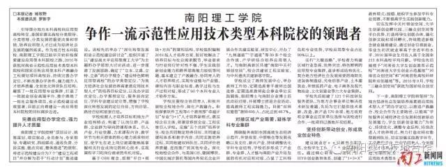 下一步,南阳理工学院将坚持“为地方经济社会发展培养高素质应用技术型人才”的办学定位,以推进产教融合、校企合作为主要路径,以提高“学校服务区域经济社会发展和创新驱动发展能力、学生创新创业能力”为核心,持续优化、调整专业结构,持续改进人才培养模式,努力打造双师双能型教师队伍,切实加强实践教学环节,主动邀约产业、行业协同育人,全面提升人才培养质量,充分发挥学校的示范、引领作用,切实把学校建成示范性应用技术类型本科院校中的领跑者。