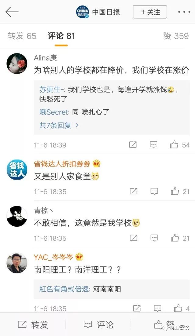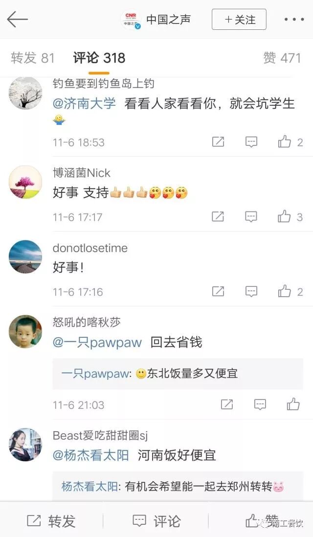 对于南工推出“一元菜”,各大媒体纷纷表示赞同、并转载,下面让我们看看广大网友如何看待这一惠及广大师生的政策