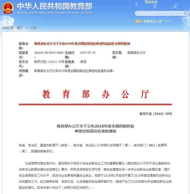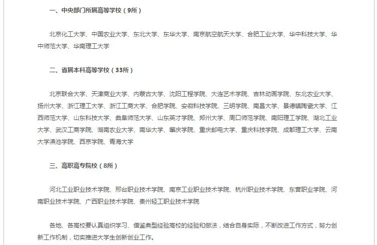 2018年度全国创新创业典型经验高校名单